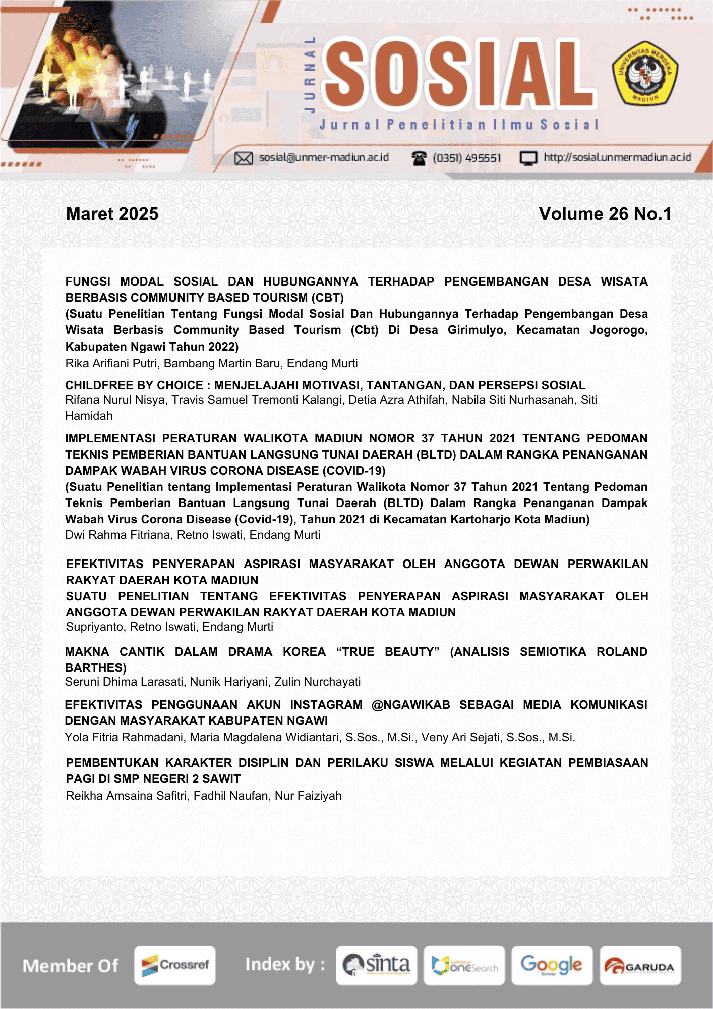 Sosial : Jurnal Ilmu-Ilmu Sosial is a journal published by the Faculty of Social and Political Sciences,, Universitas Merdeka Madiun (UNMER Madiun).